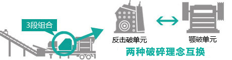 一種車身為8種機型通用,喂料單元互換系統、破碎單元互換系統和篩分單元互換系統,只需再投資單機設備成本,短時間內,即可在同一車身上實現不同型號喂料單元、破碎單元和篩分單元互換系統,整機各系統之間的匹配,適應場合更廣泛,破碎功能更強,客戶的消費品得到較大體現。
